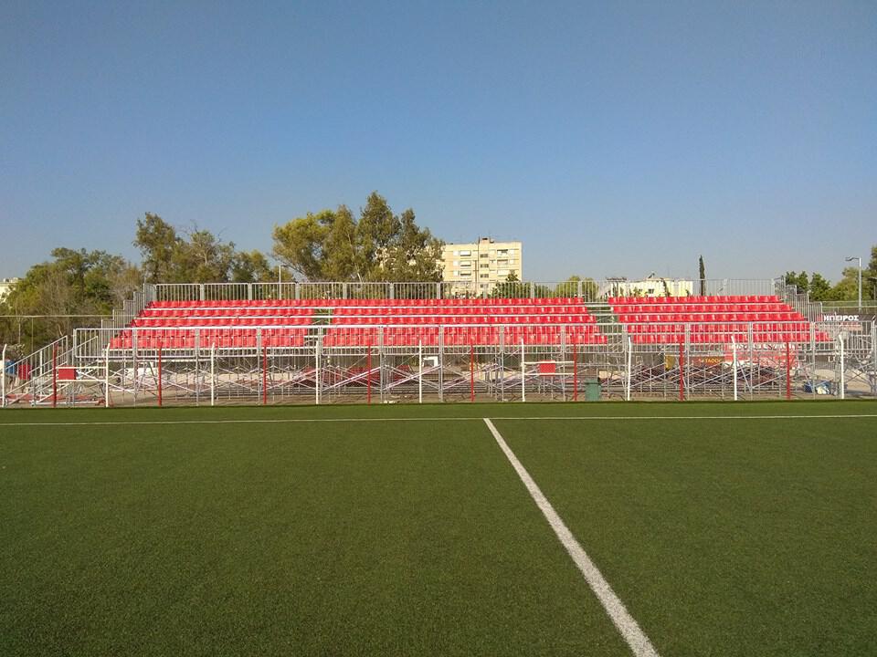 Μαζί με την αντικατάσταση του χλοοτάπητα, πραγματοποιήθηκε και η ανακατασκευή-επέκταση της εξέδρας χωρητικότητας πλέον 500 ατόμων.